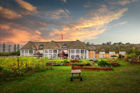 Vi har også en restaurant med god kog og en bar med udsigt over Sorø.